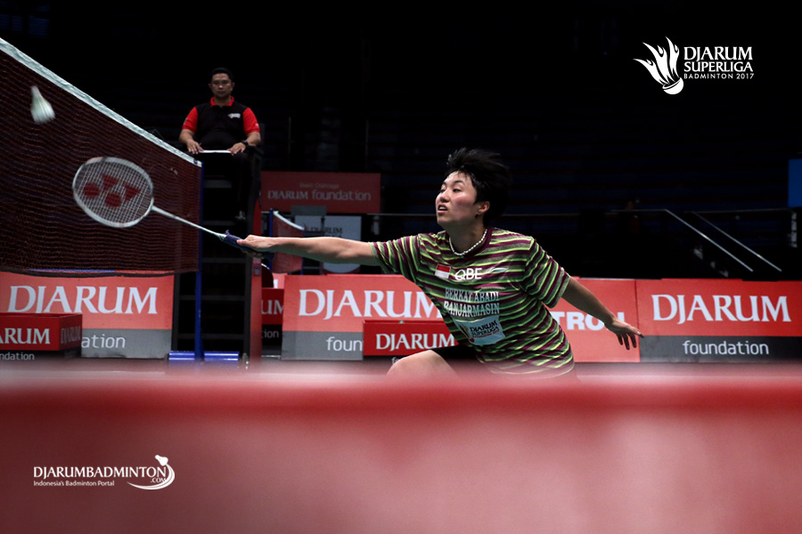 Dian Fitriani/Nadya Melati (PB Berkat Abadi) berusaha menggapai pengembalian.