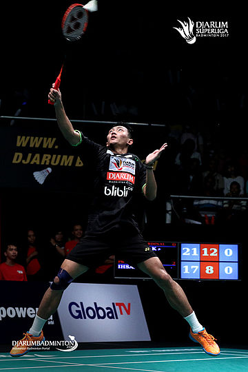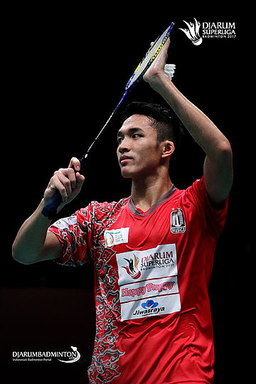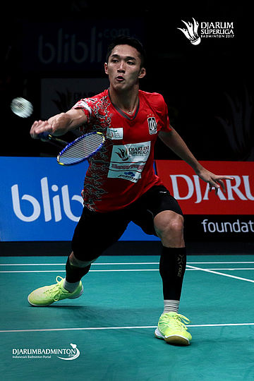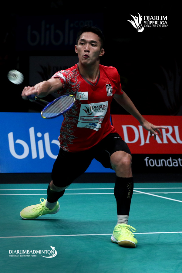 Jonatan Christie (PB Musica Champion) menghadang serangan.
