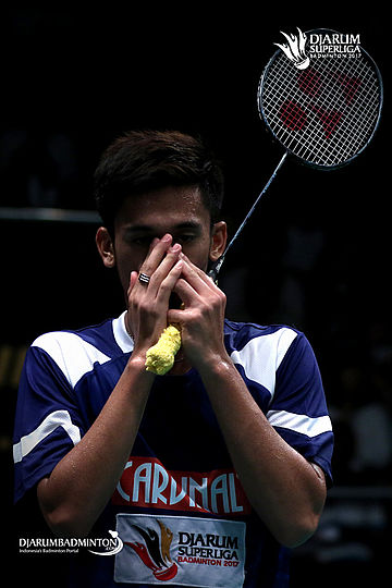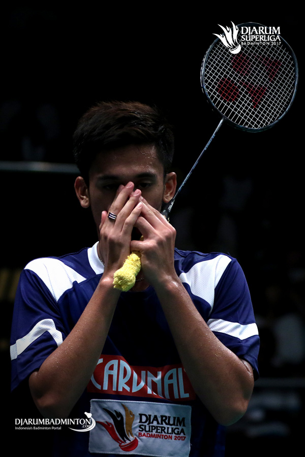 Selebrasi kemenangan Jonatan Christie (PB Musica Champion).