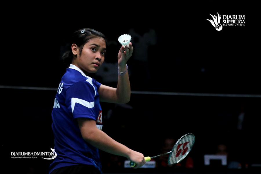 Ekspresi kekecewaan Gregoria Mariska (PB Mutiara Cardinal).