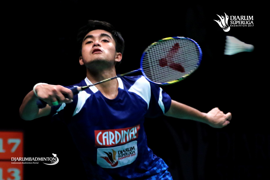 Panji Ahmad (PB Mutiara Cardinal) mengembalikan shuttlecock.