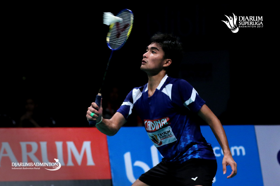 Ekspresi Panji Ahmad (PB Mutiara Cardinal) saat berhasil mencuri poin.
