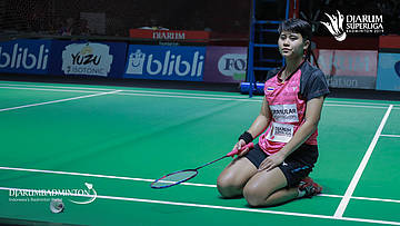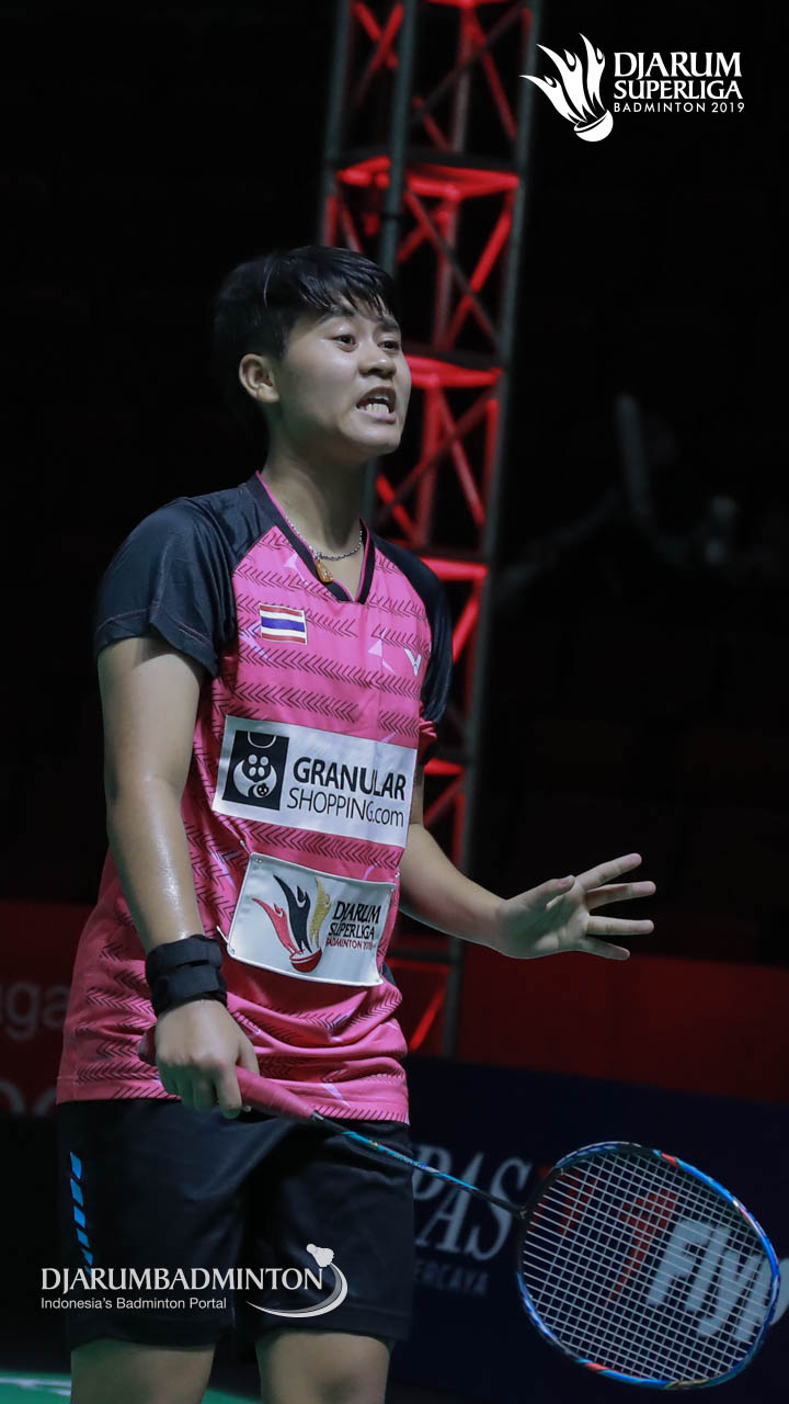 Ekspresi Phataimas Muenwong (Granular) gagal menggapai shuttlecock