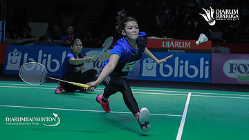 Maretha Dea Giovani/Yulfira Barkah (Mutiara Cardinal Bandung) menahan serangan