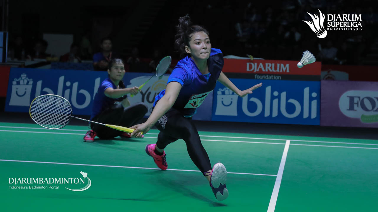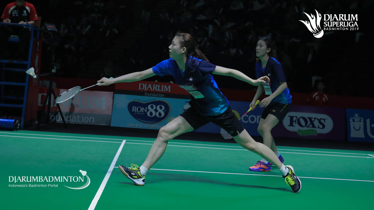 Eom Hye Won/Kim Ha Na (Mutiara Cardinal Bandung) menahan serangan