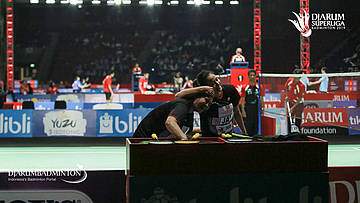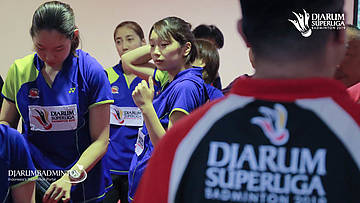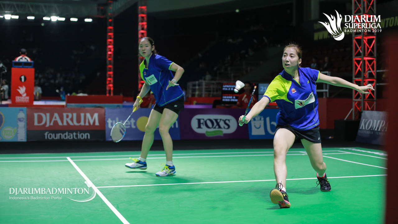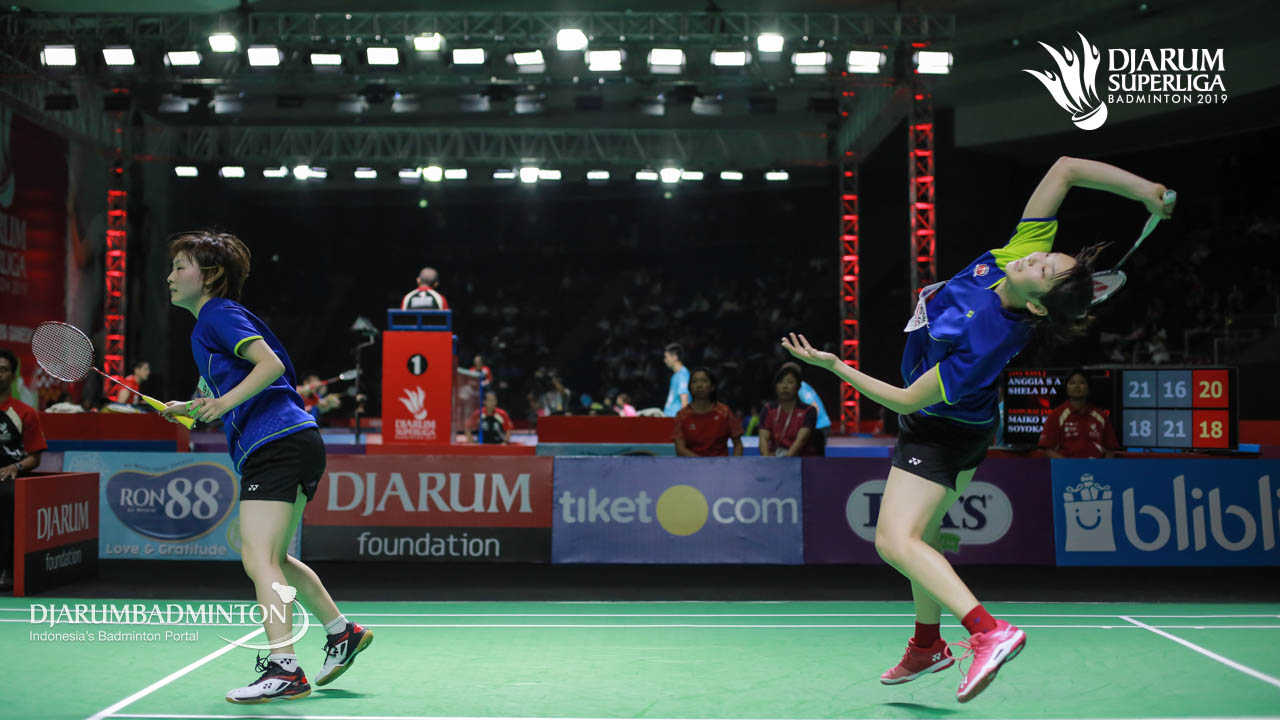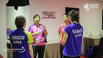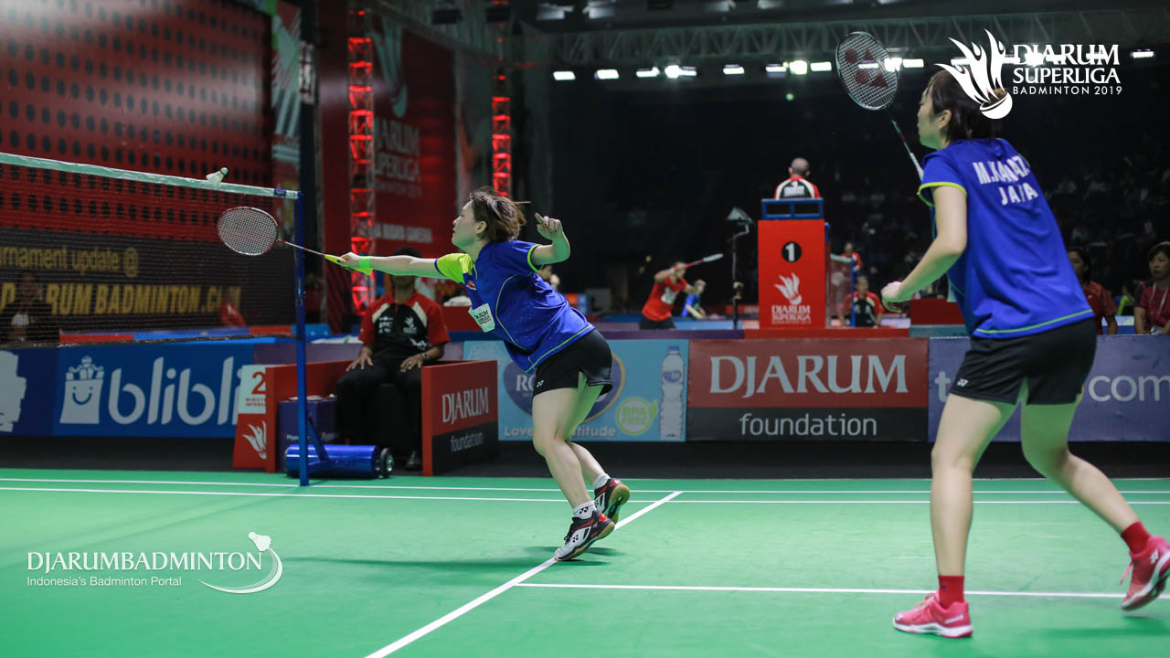 Akane ARAKI+Riko IMAI (SAMURAI JAPAN REPTILES) bersiap menyambut shuttlecock