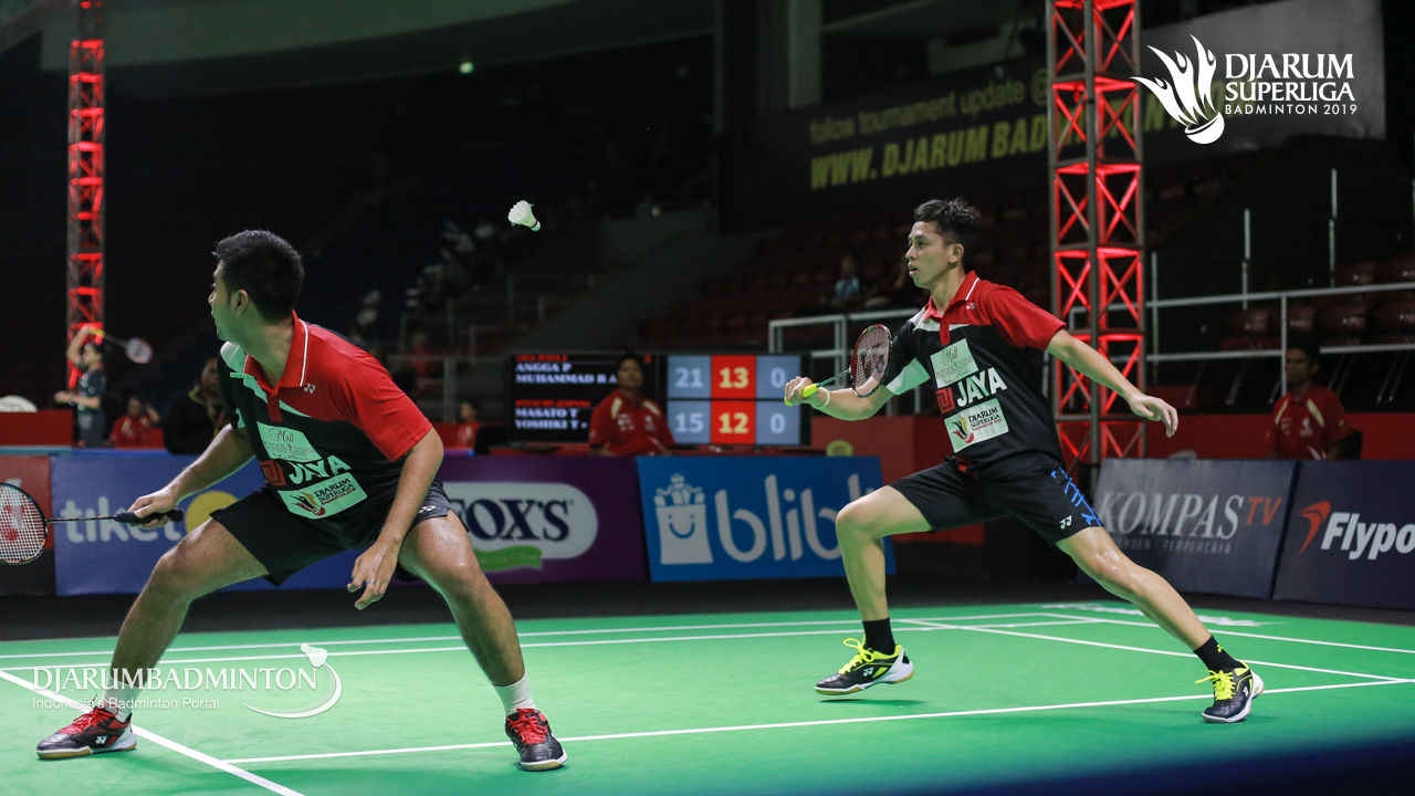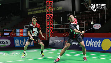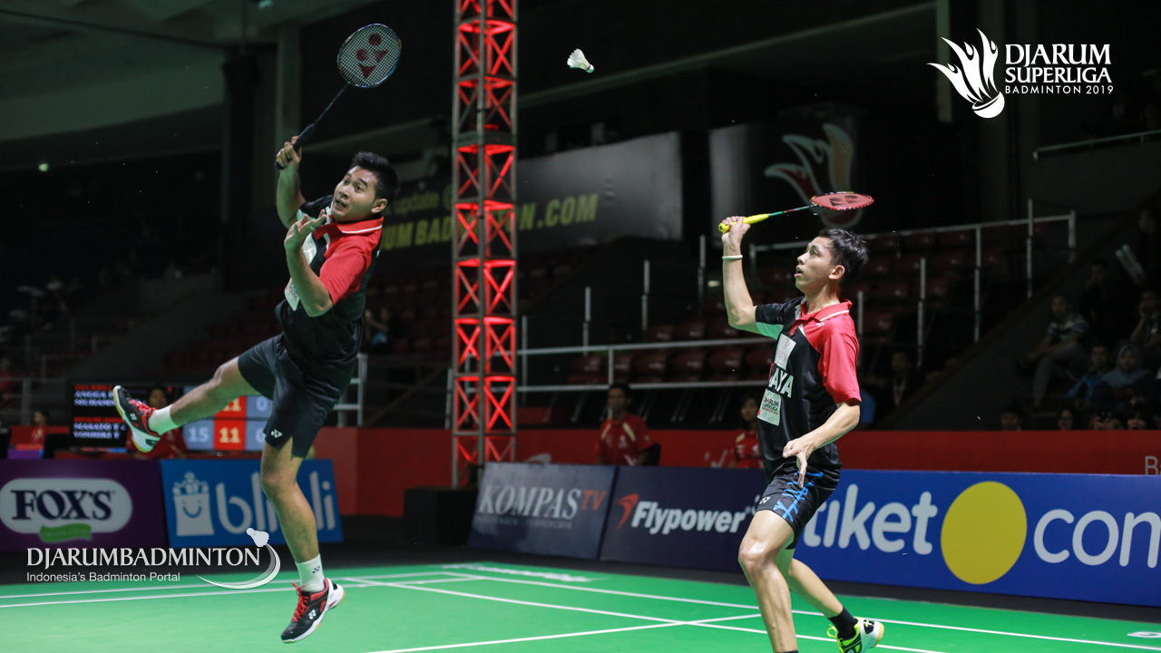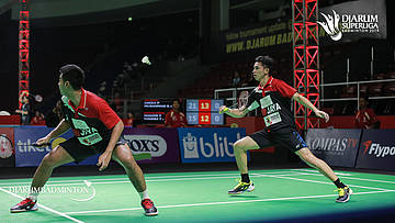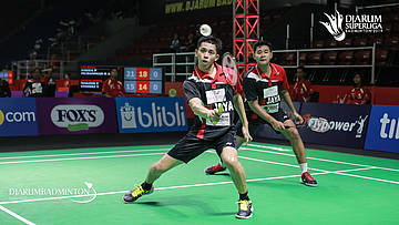 Angga PRATAMA+Muhammad Rian ARDIANTO (JAYA RAYA JAKARTA) mengembalikan shuttlecock