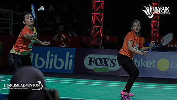 Maretha Dea Giovani/Yulfira Barkah (Mutiara Cardinal Bandung) saat memenangkan pertandingan