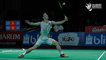 Ihsan Maulana Mustofa (Djarum Kudus) Menggapai Shuttlecock