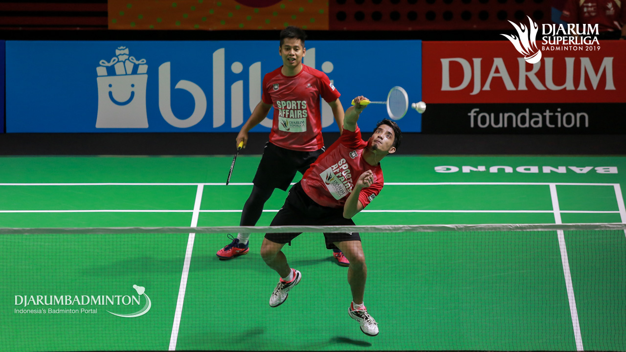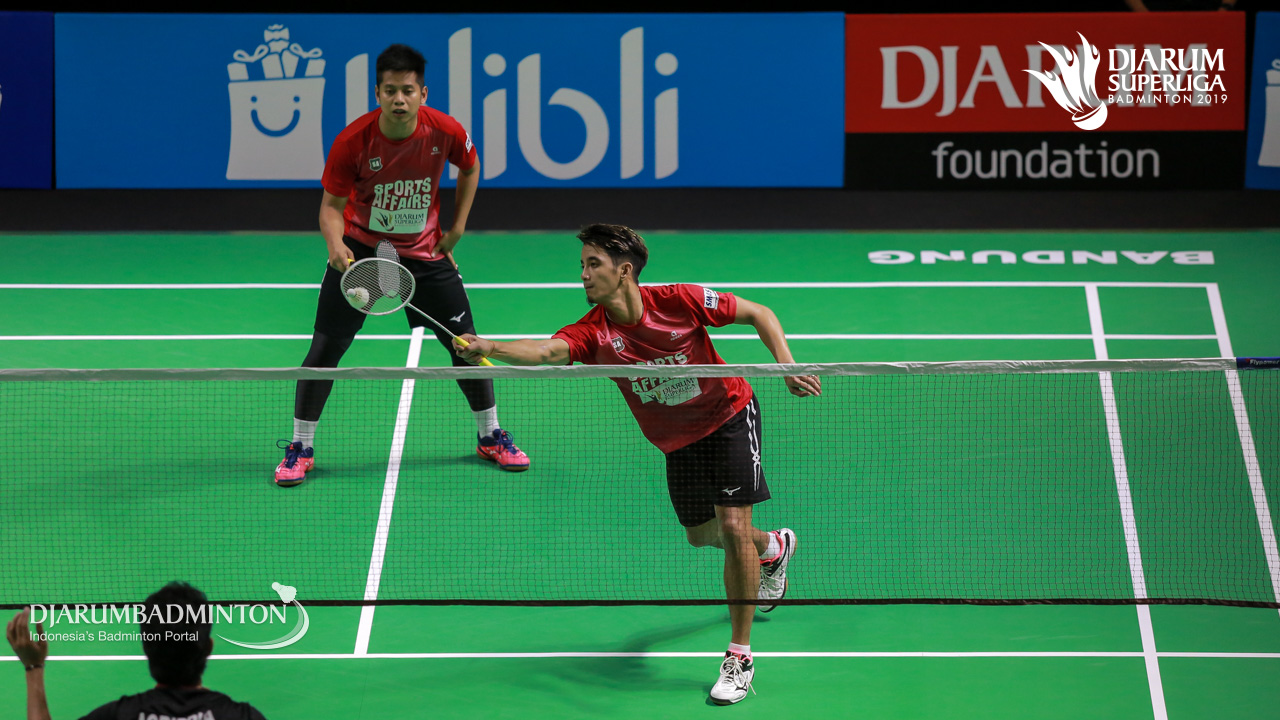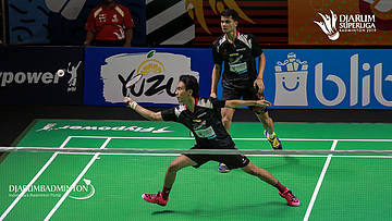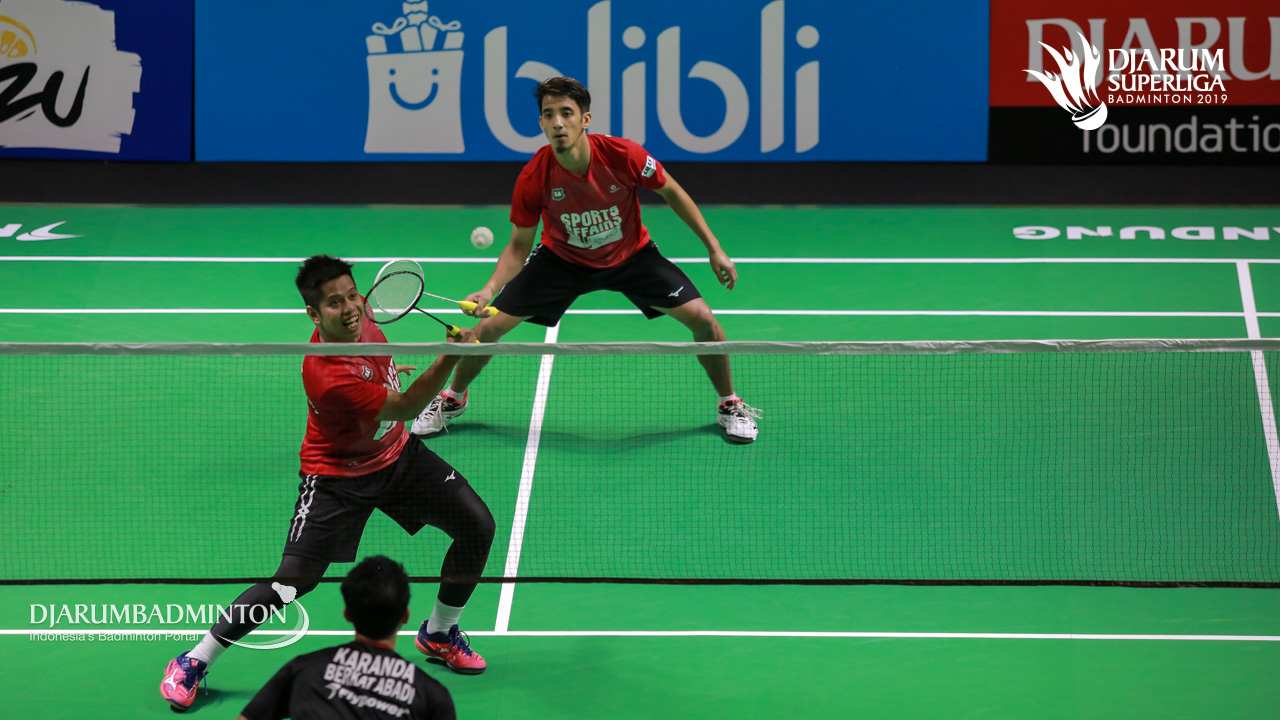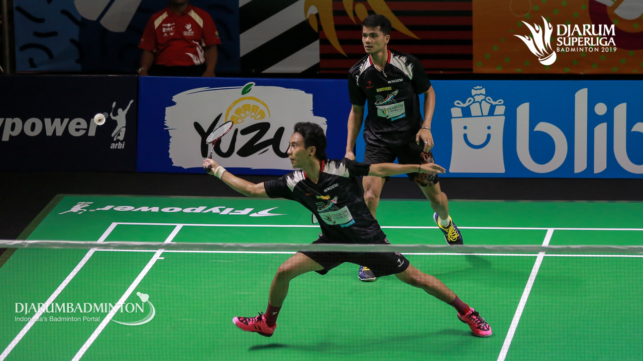 Agripinna Prima Rahmanto PUTRA+Ricky KARANDASUWARDI (BERKAT ABADI) berusaha melakukan pertahanan