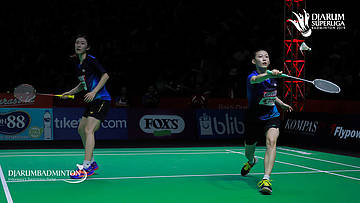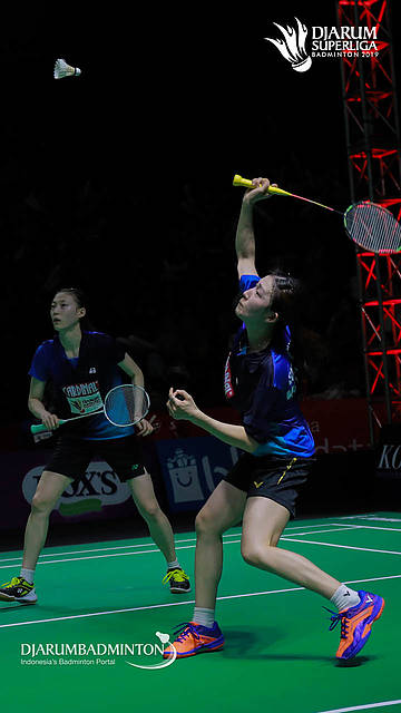 Eom Hye Won/Kim Ha Na (Mutiara Cardinal Bandung) mengembalikan shuttlecock