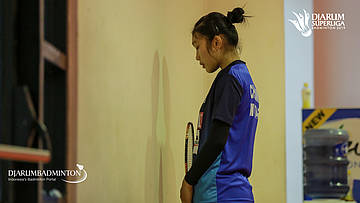 Choirunnisa (Mutiara Cardinal Bandung) mengembalikan shuttlecock