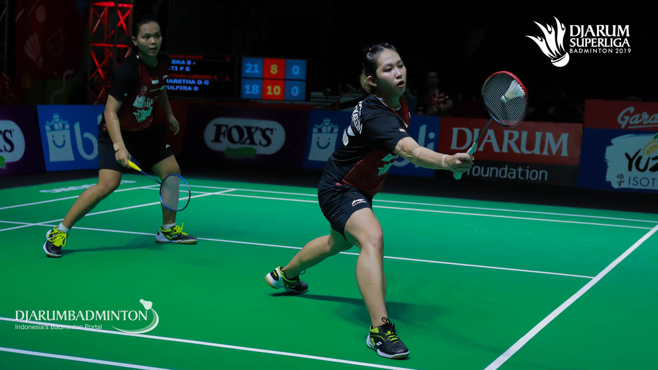 Maretha Dea Giovani/Yulfira Barkah (Mutiara Cardinal Bandung) menahan serangan