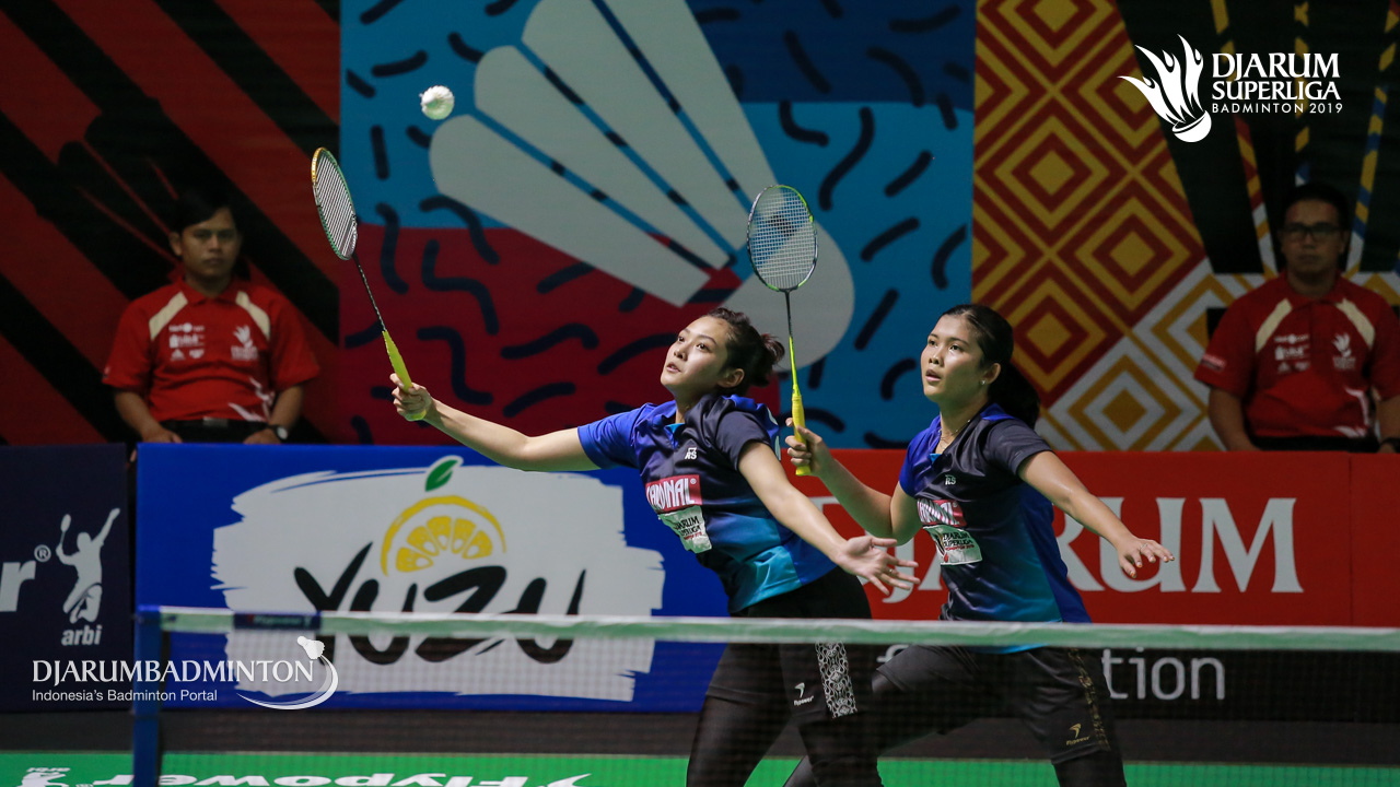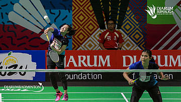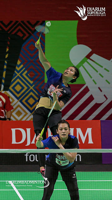 Dian FITRIANI+Nadya MELATI (BERKAT ABADI) berusaha mengembalikan shuttlecock