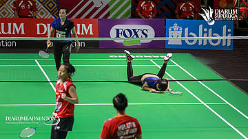 Maretha Dea GIOVANI+Yulfira BARKAH (MUTIARA CARDINAL BANDUNG) terjatuh saat berusaha mengembalikan serangan