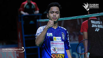 Anthony Sinisuka Ginting (Musica Trinity) seusai memenangkan pertandingan