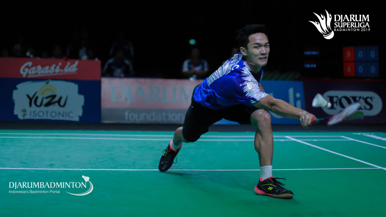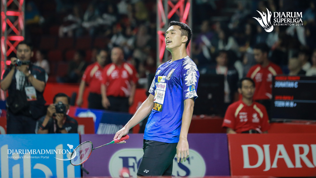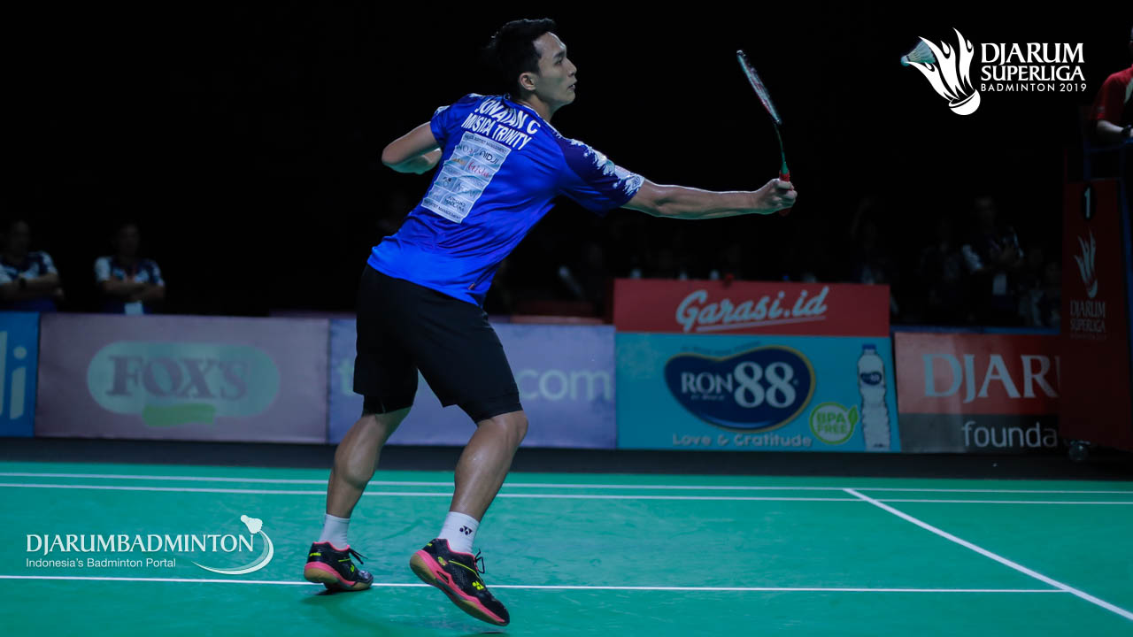 Jonatan Christie (Musica Trinity) mengemballikan shuttlecock