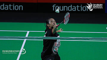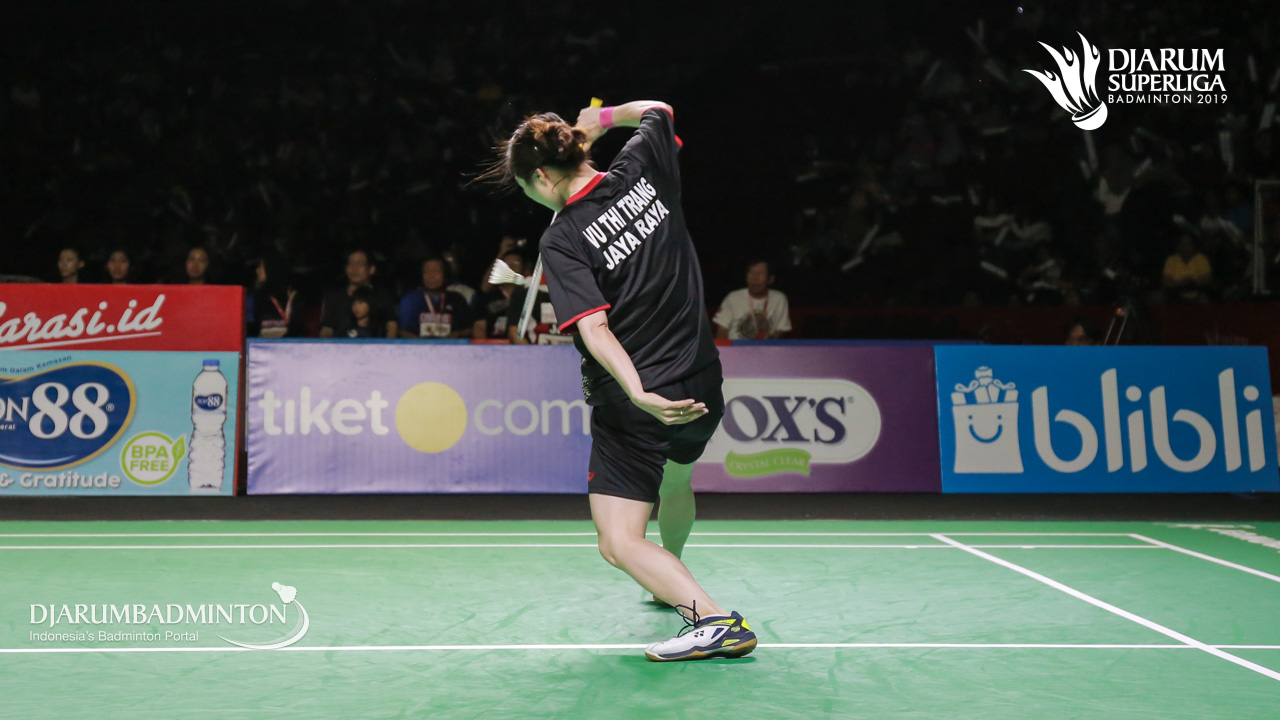 Thi Trang VU (JAYA RAYA JAKARTA) mengembalikan shuttlecock