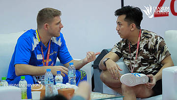 ZHANG Beiwen (BERKAT ABADI) berbincang-bincang saat berada di player lounge