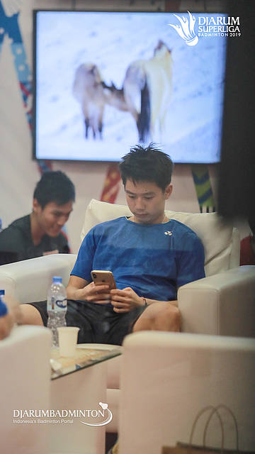 Kevin Sanjaya SUKAMULJO (DJARUM KUDUS) bersantai saat berada di player lounge