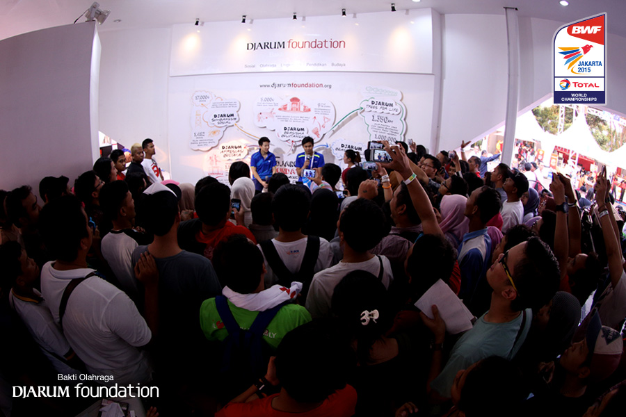 Keramaian booth Djarum Foundation saat meet and greet bersama Tontowi Ahmad/Liliyana Natsir (INA)