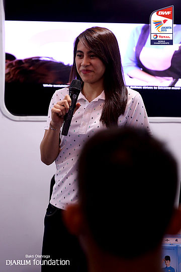 Nitya Krishinda M/Greysia Polii (INA) menahan serangan lawan