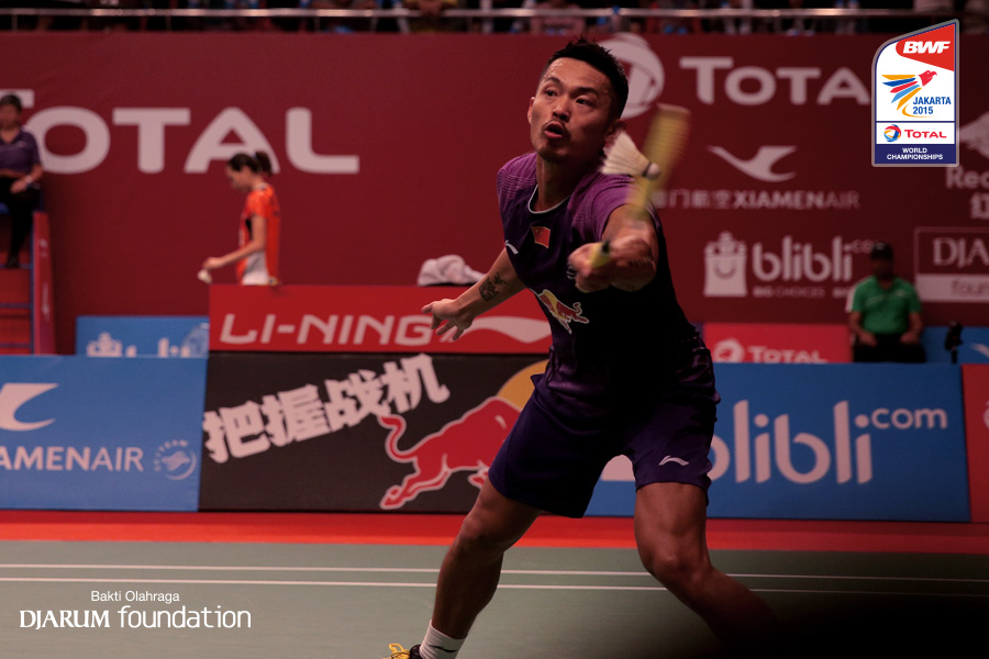 Lin Dan (CHN) mengembalikan shuttlecock arah lawan