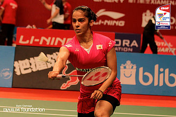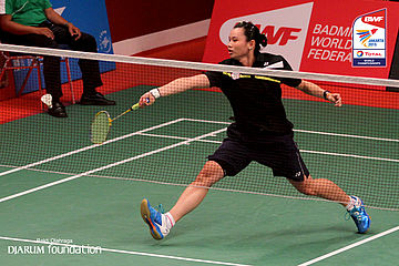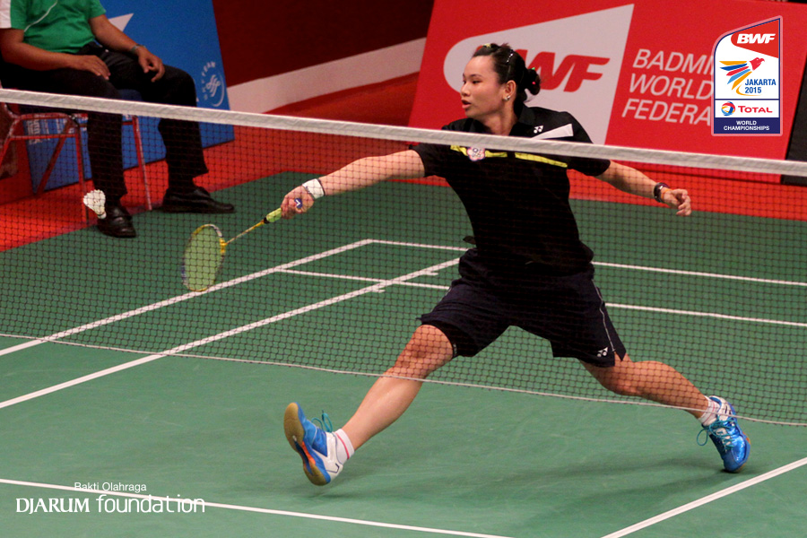Tai Tzu Ying (TPE) berusaha menggapai shuttlecock