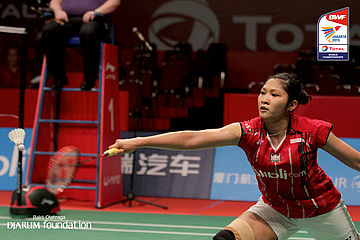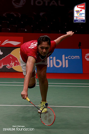 Lindaweni Fanetri (INA) menahan serangan lawan